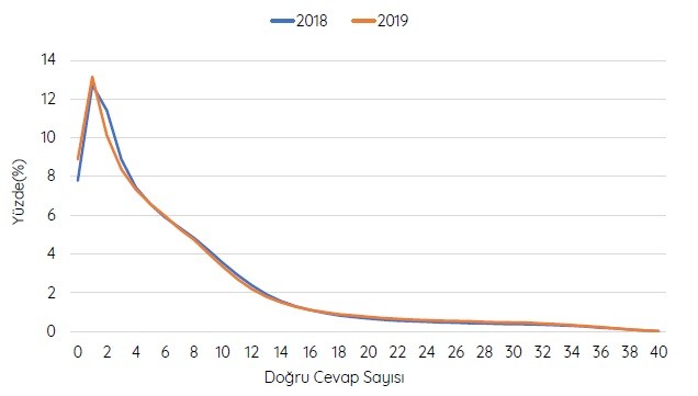 2019 TYT Türkçe Testi Doğru Cevap Sayısı Dağılımı
